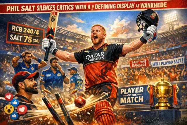 Seventy-eight runs from thirty-six deliveries is not merely a personal milestone — it is a statement. Phil Salt, the English opener representing Royal Challengers Bengaluru in the 2026 Indian Premier League, delivered exactly that kind of response against Mumbai Indians on April 12, walking into a contest where his position in the side was being openly questioned and walking out with the Player of the Match award. RCB posted 240 runs and defended that total by 18 runs, a result that would not have been possible without Salt's contribution at the top of the order.